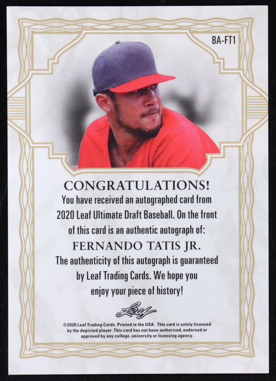 Fernando Tatis Jr. 2020 Leaf Ultimate Draft Gold #BAFT1 #68/75