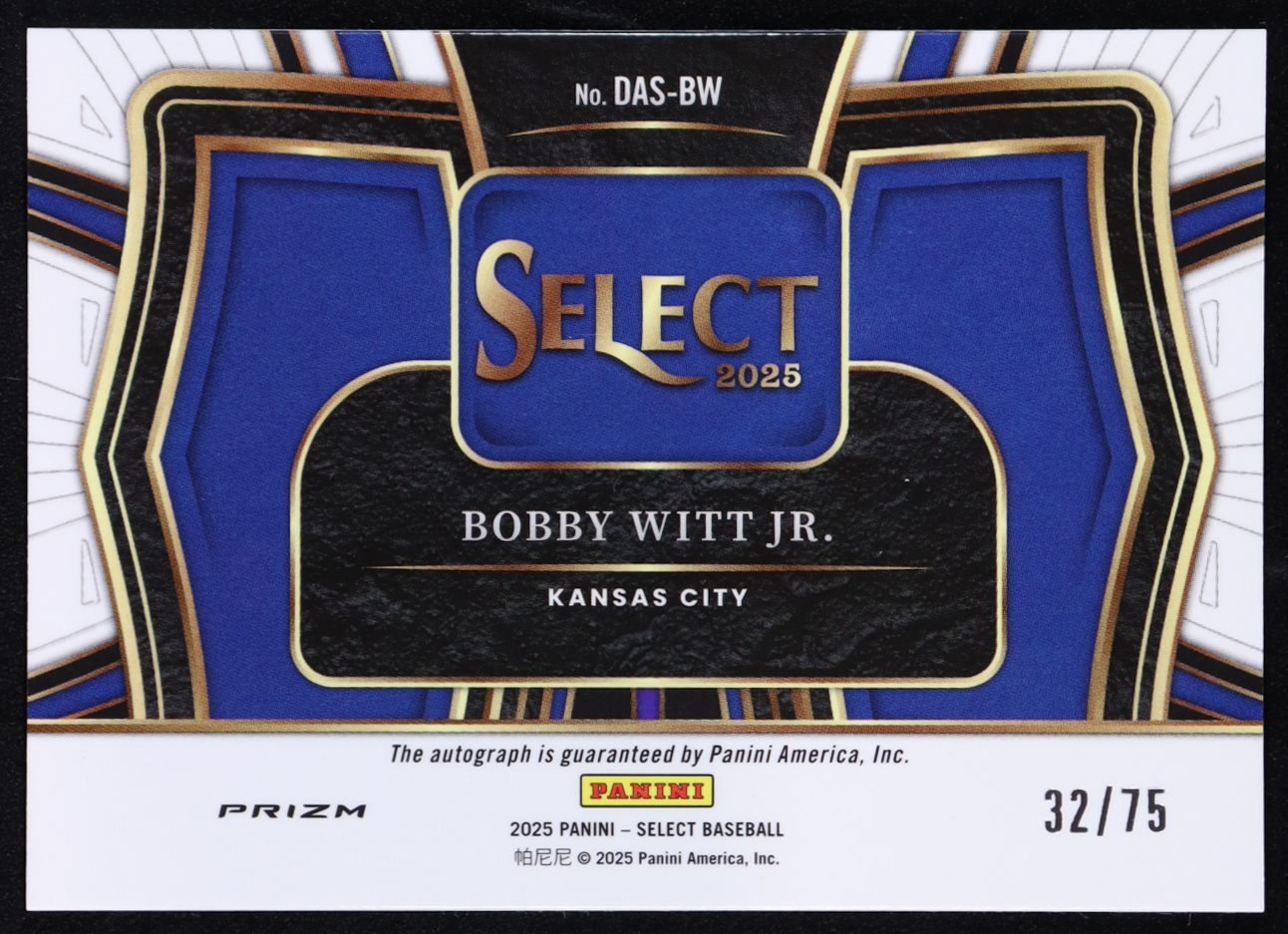 Bobby Witt Jr. 2025 Select Diamond Action Signatures Orange Prizms #24 #32/75