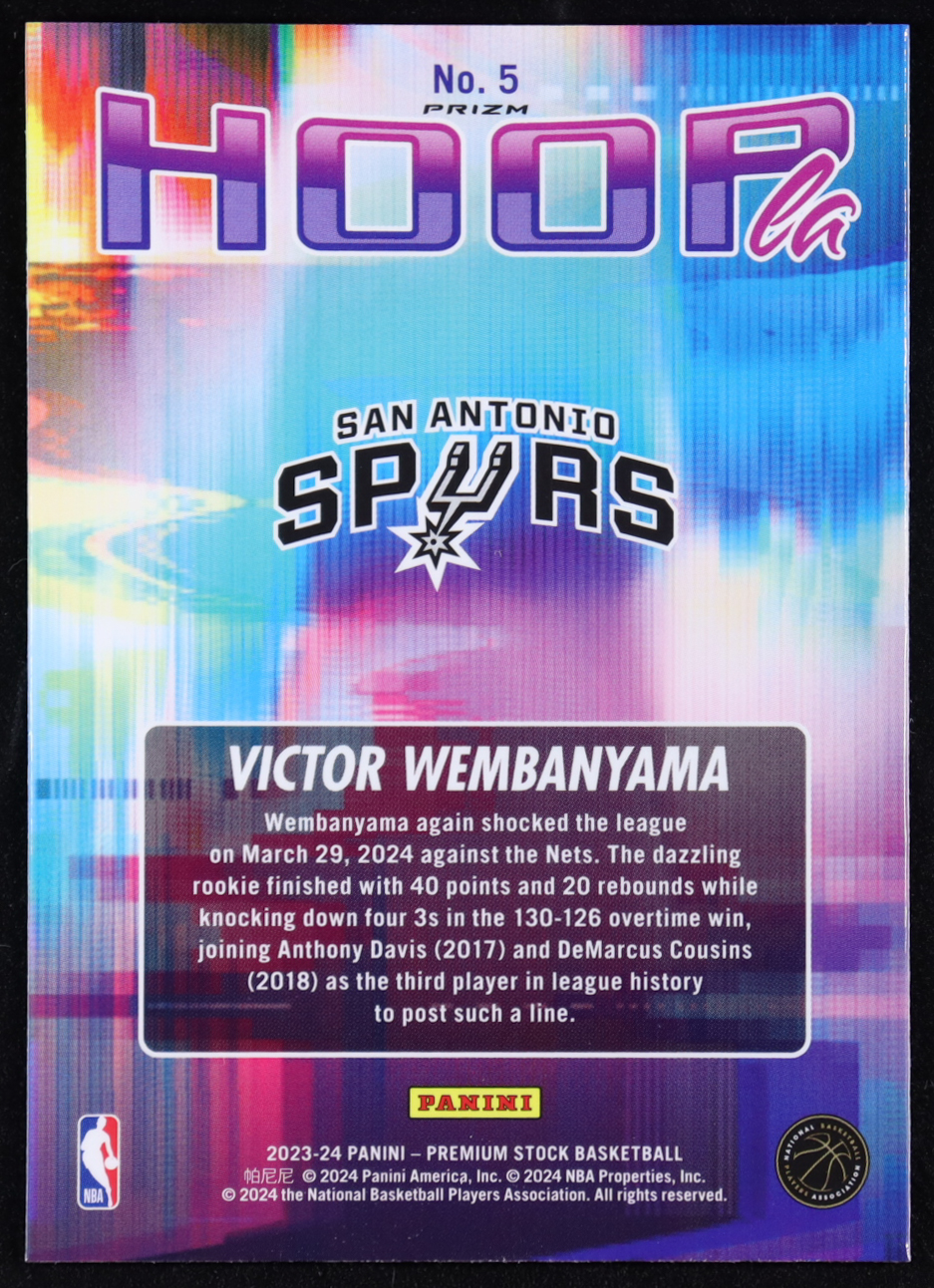 Victor Wembanyama 2023-24 Hoops Premium Stock Hoopla Silver Prizm #5 RC