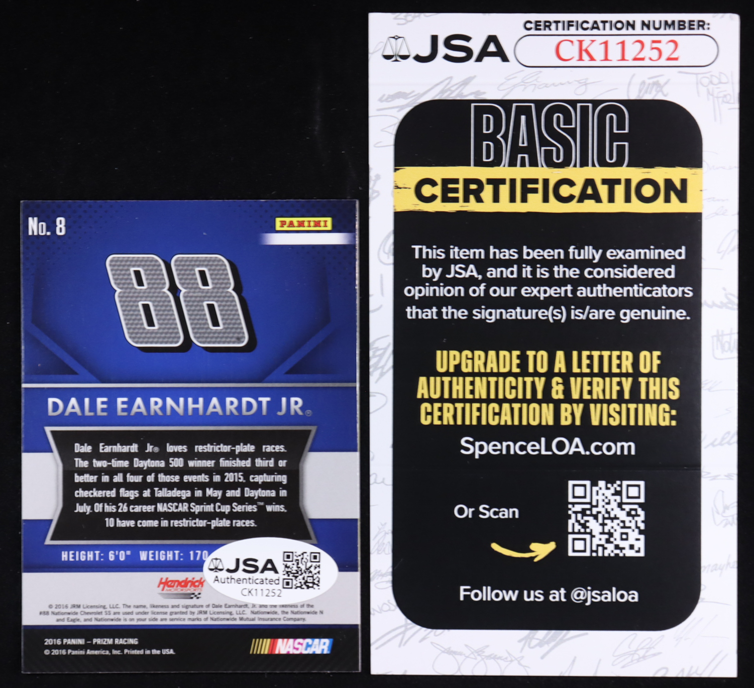 Dale Earnhardt Jr. Signed 2016 Panini Prizm #8 (JSA Autograph Graded Authentic)