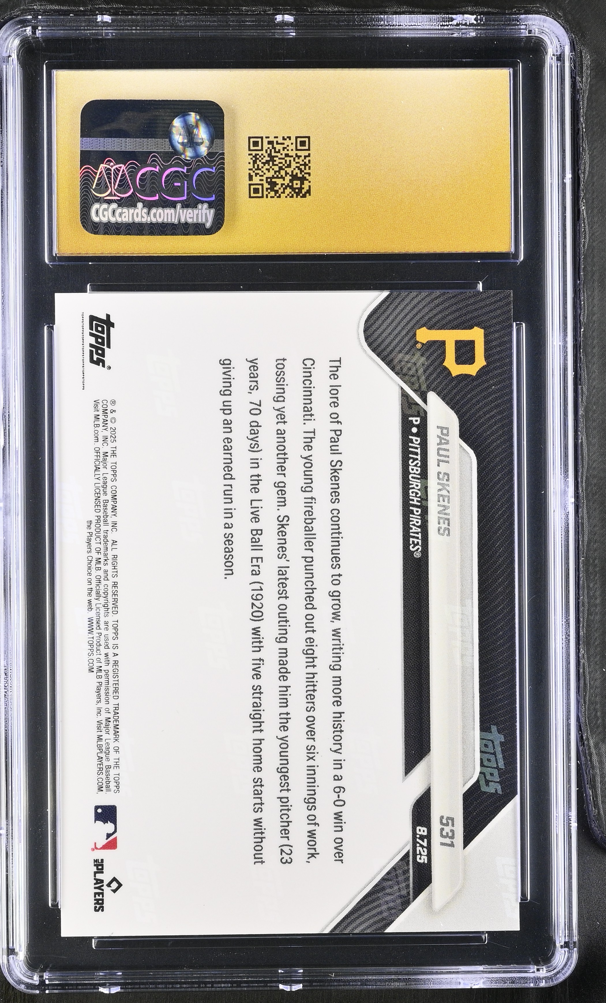 Paul Skenes 2025 Topps Now #531 (CGC 10 | Pristine Black Label)