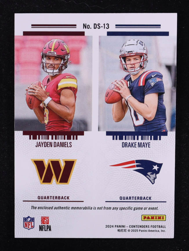 Drake Maye / Jayden Daniels 2024 Panini Contenders Rookie Ticket Dual Swatches #13 RC