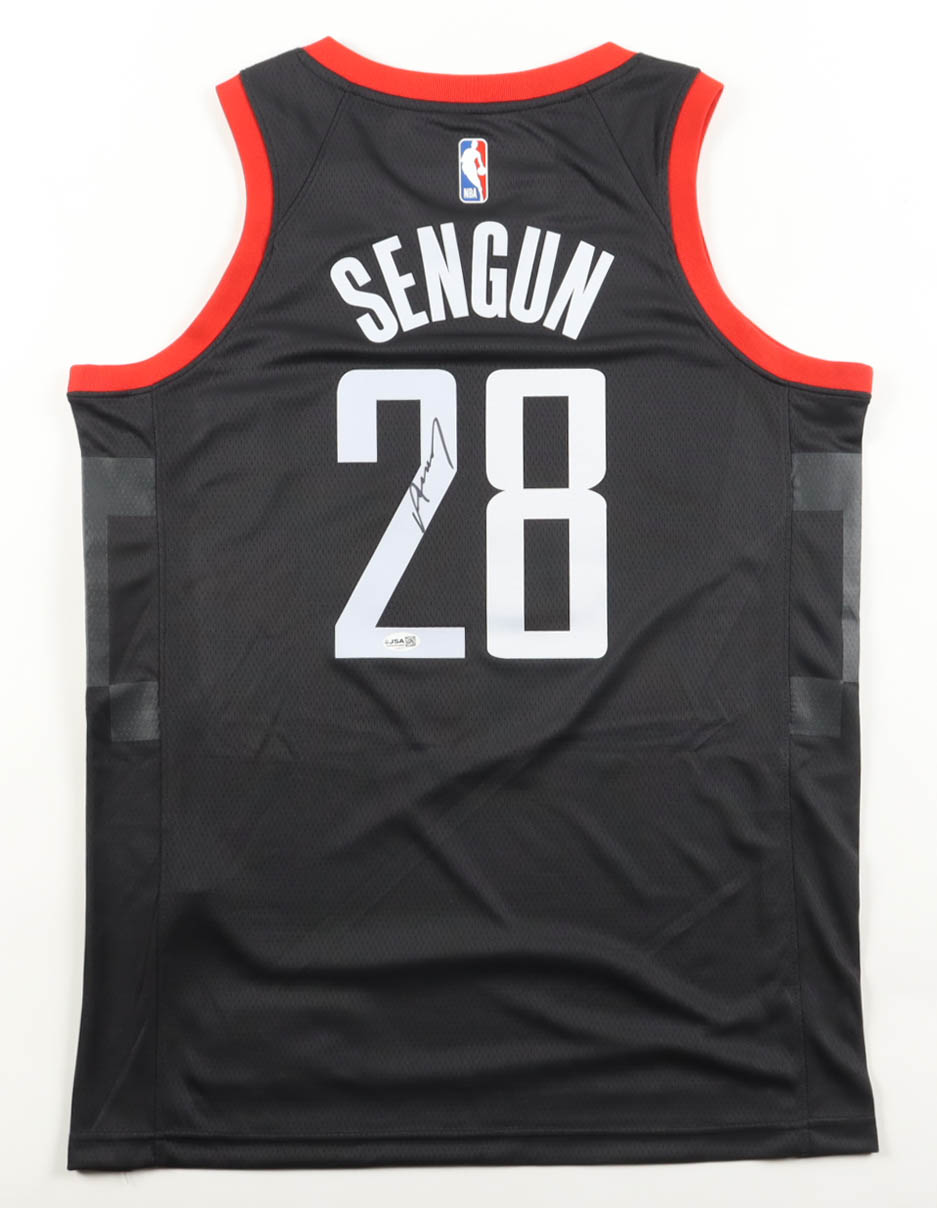 Jordan jersey. Everything is pressed on, size 48. Hand-signed by Alperen Sengun (Houston Rockets).