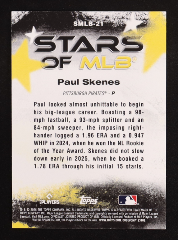 Paul Skenes 2026 Topps Stars of MLB Black #SMLB21 #08/10
