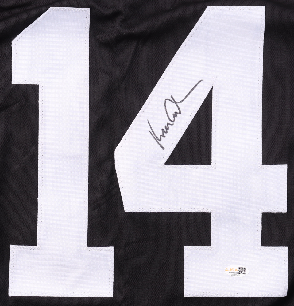 Custom jersey with everything sewn on, size XL. Hand-signed by Ken Anderson.
