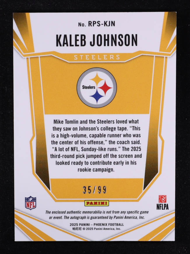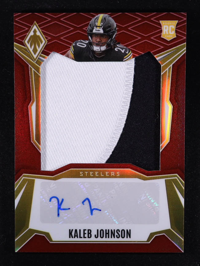 Kaleb Johnson 2025 Panini Phoenix Rookie Patch Autographs Red #35 RC #35/99