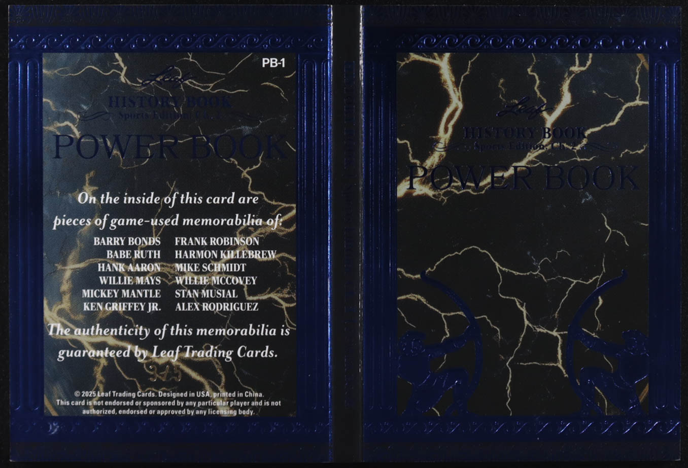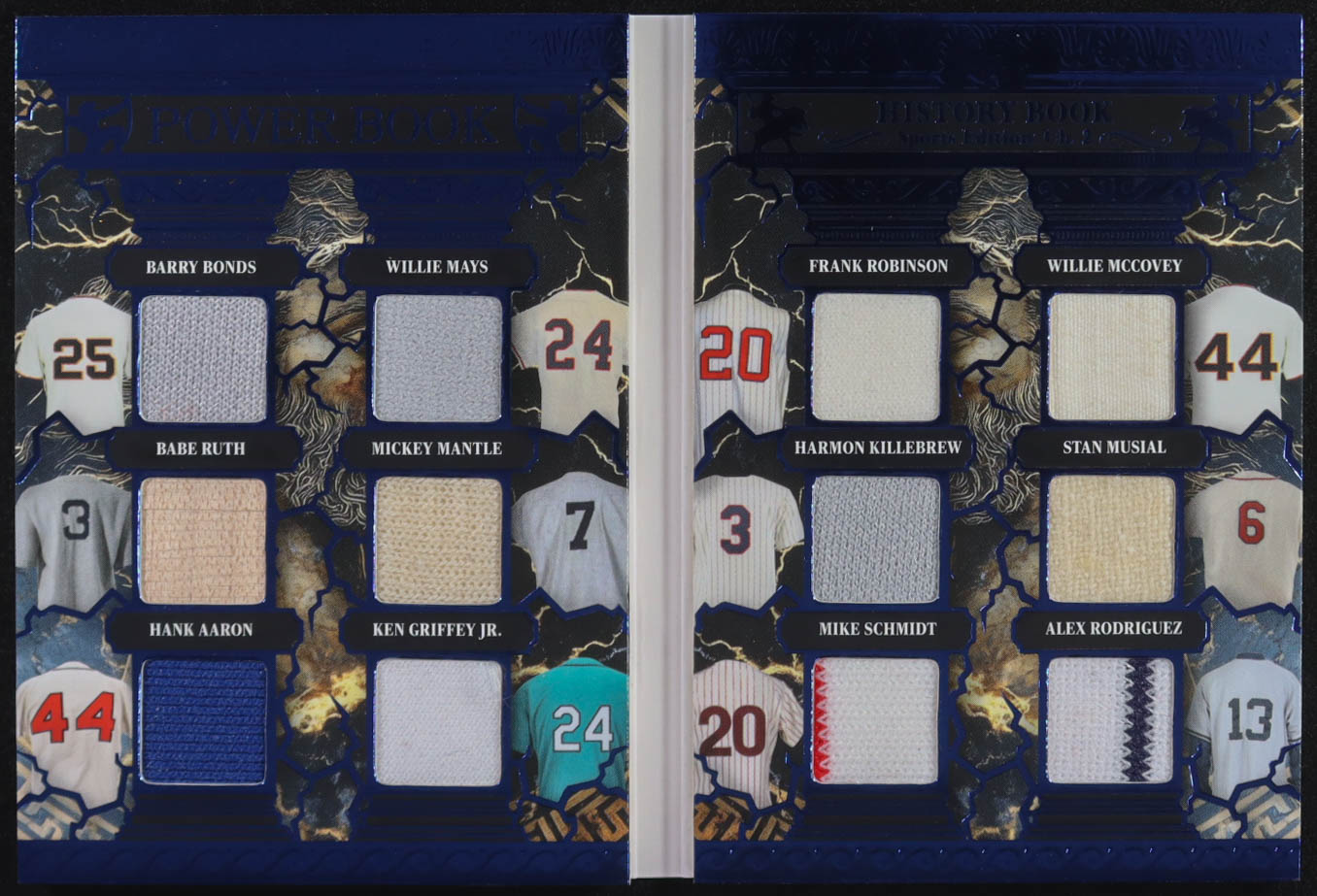 2025 Leaf History Book Power Book Blue Sports Edition Ch.2 #PB-1 #3/5 Barry Bonds/Willie Mays/Babe Ruth/Mickey Mantle/Hank Aaron/Ken Griffey Jr./Frank Robinson/Willie McCovey/Harmon Killebrew/Stan Musial/Mike Schmidt/Alex Rodriguez
