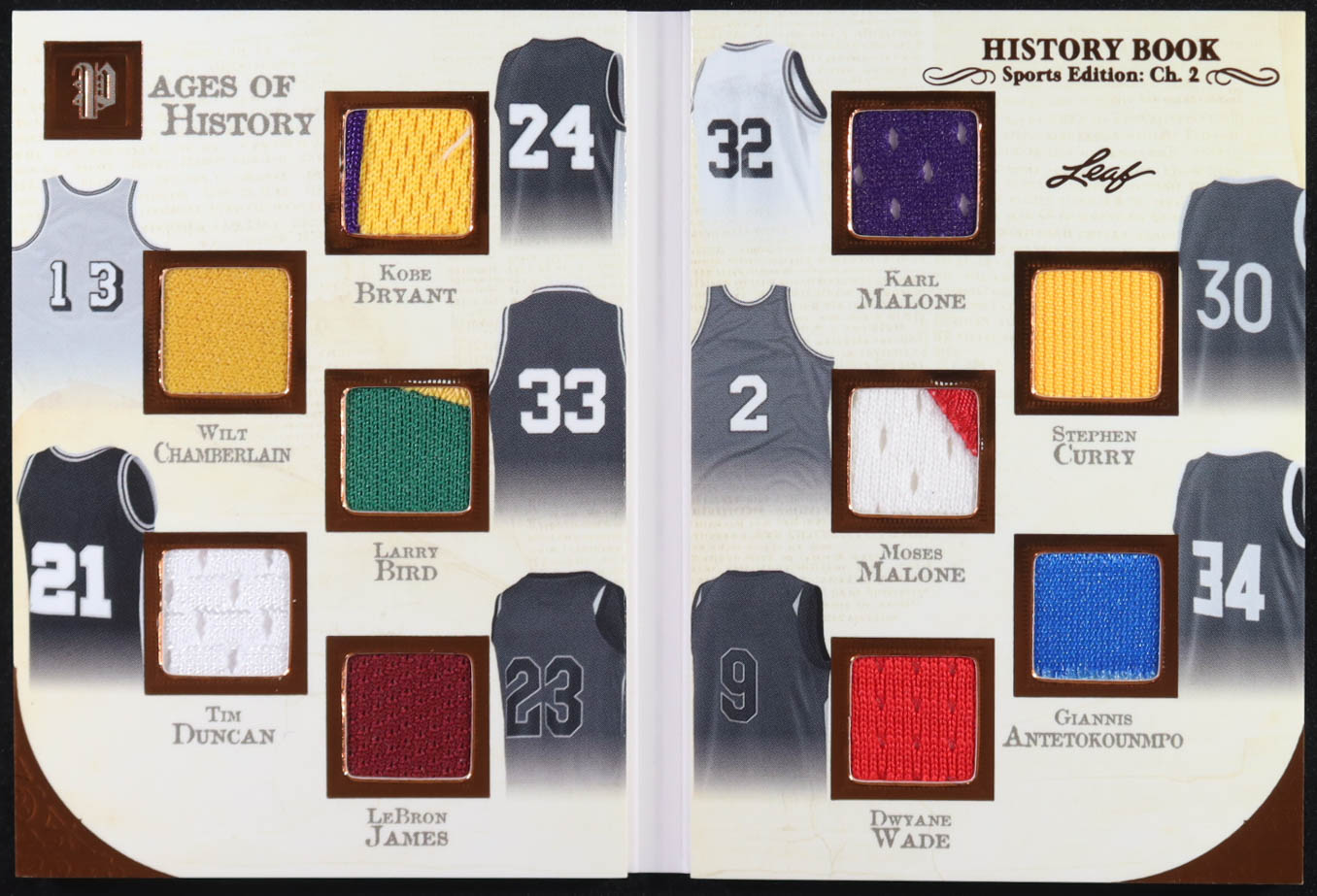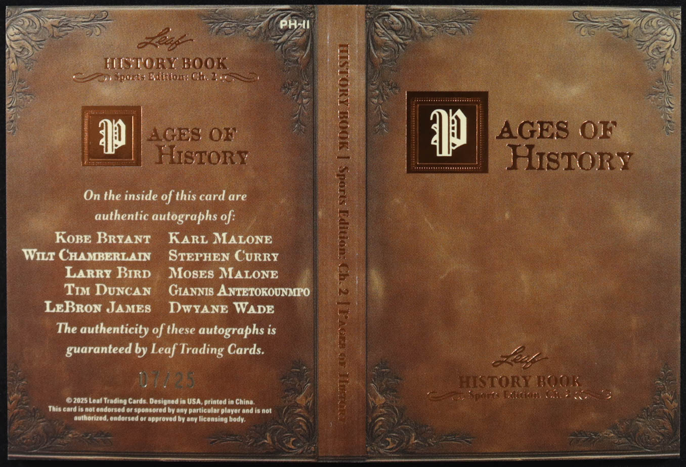 2025 Leaf History Book Pages of History Bronze Sports Edition Ch.2 #PH11 #7/25 Kobe Bryant/Wilt Chamberlain/Larry Bird/Tim Duncan/LeBron James/Karl Malone/Stephen Curry/Moses Malone/Giannis Antetokounmpo/Dwyane Wade