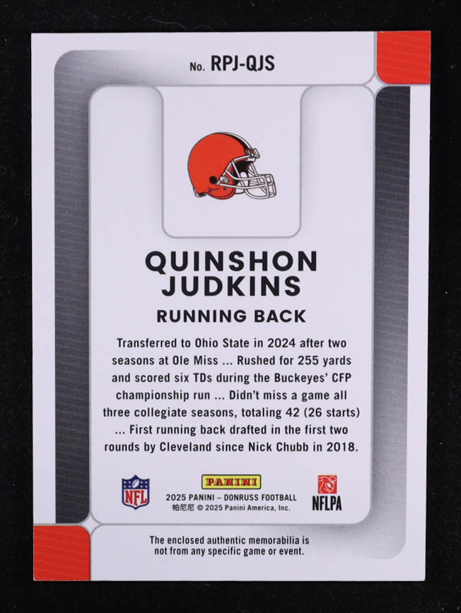 Quinshon Judkins 2025 Donruss Rookie Phenom Jerseys #4 RC