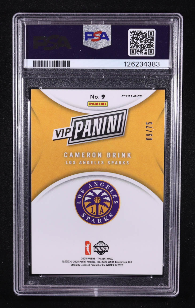 Cameron Brink 2025 Panini National Convention VIP Gold Packs Blue Sparkle #9 #9/75 (PSA 9)
