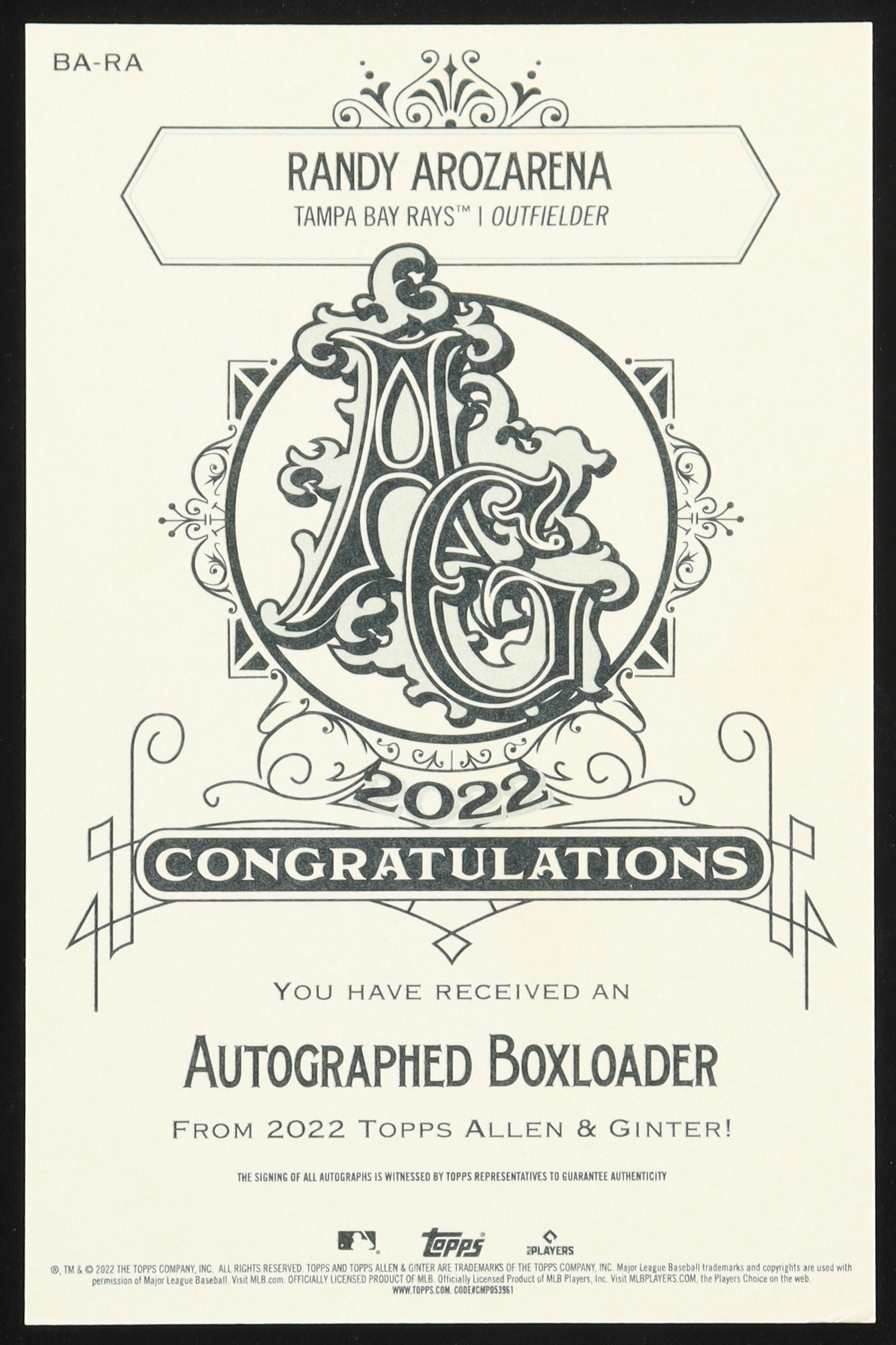 Randy Arozarena 2022 Topps Allen and Ginter Box Topper Jumbo Autographs #BARA #06 / 15