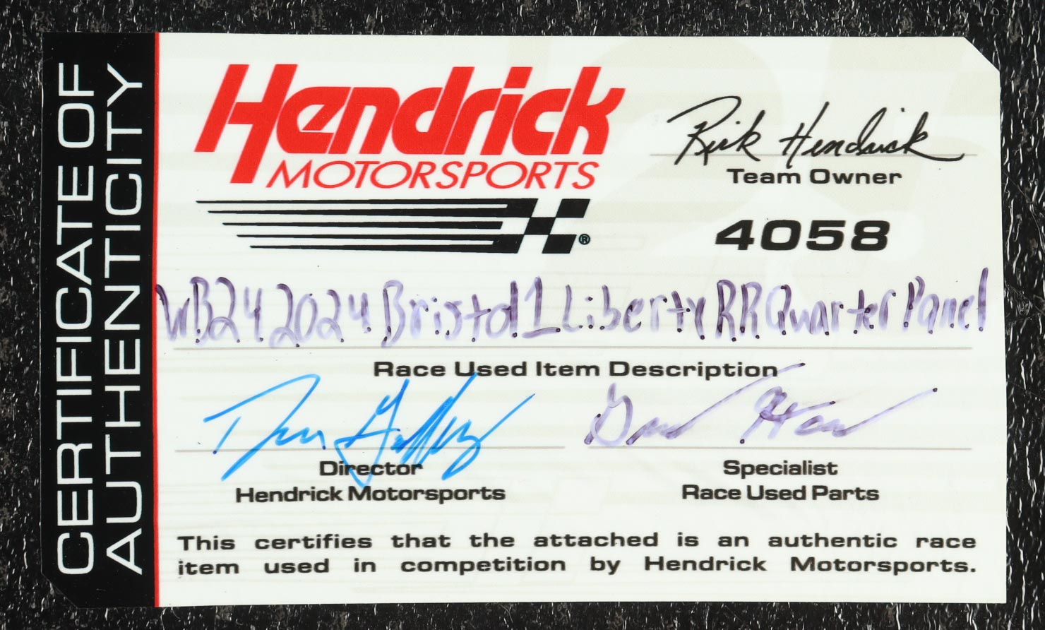 Authentication: Hendrick Motorsports COA