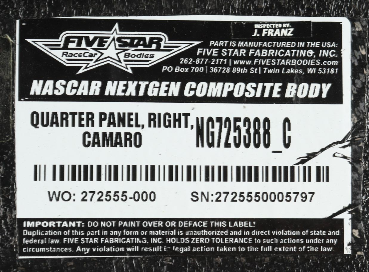 Race-Used Partial Right Rear Quarter Panel Car Piece from William Byron's #24 Liberty University used during the 2024 Bristol Motor Speedway 2. Authenticated by the Director and Race Used Parts Specialist at Hendrick Motorsports.