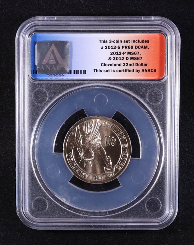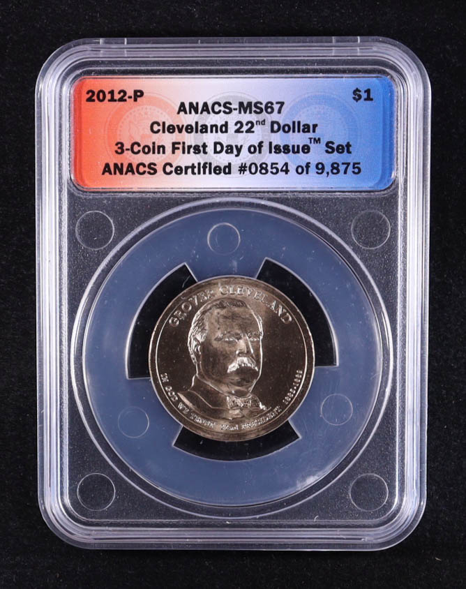 2012-P U.S. Presidential $1 - Grover Cleveland 22nd and 24th President - 3-Coin FDOI Set, Certified #854 of 9875 (ANACS MS67)