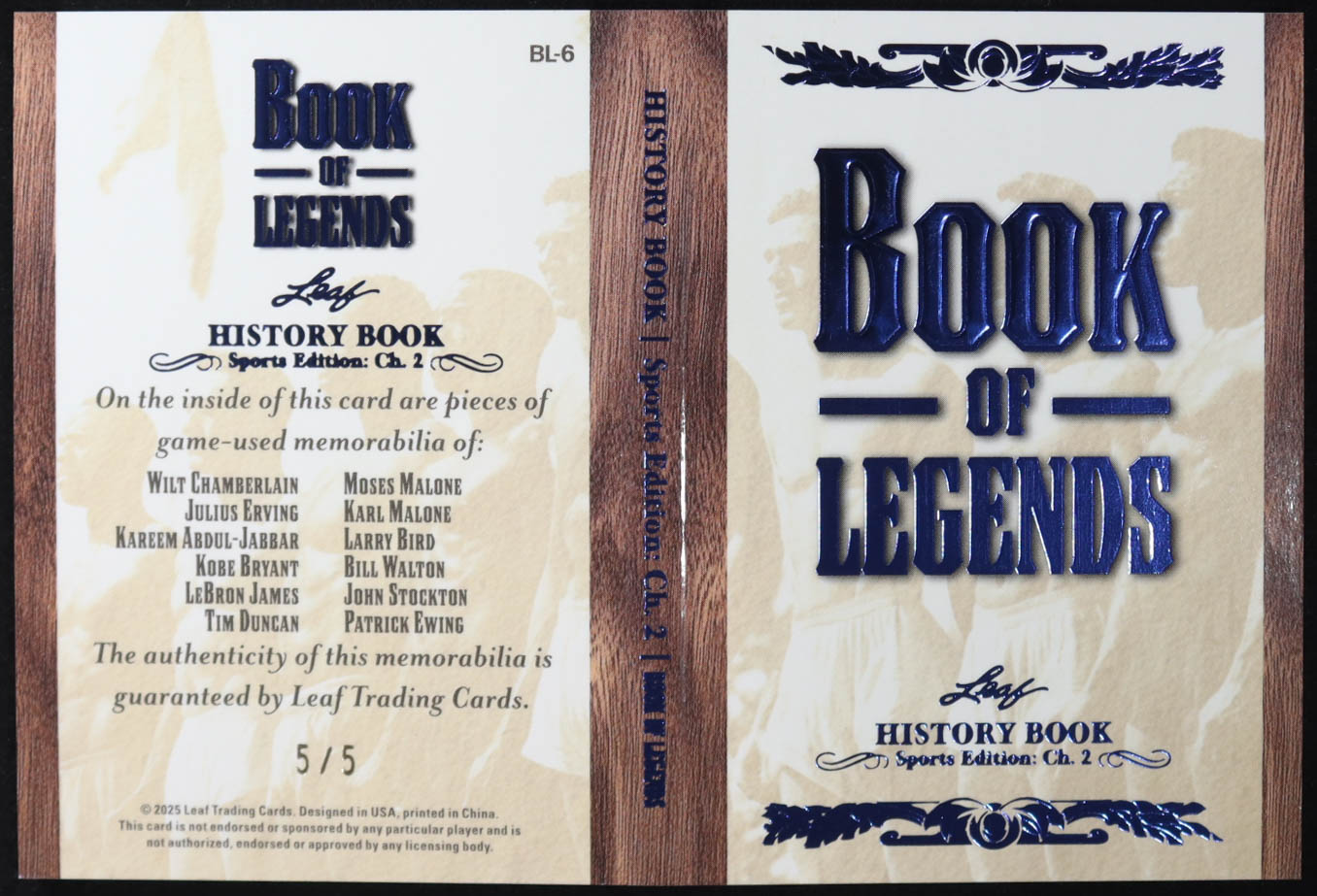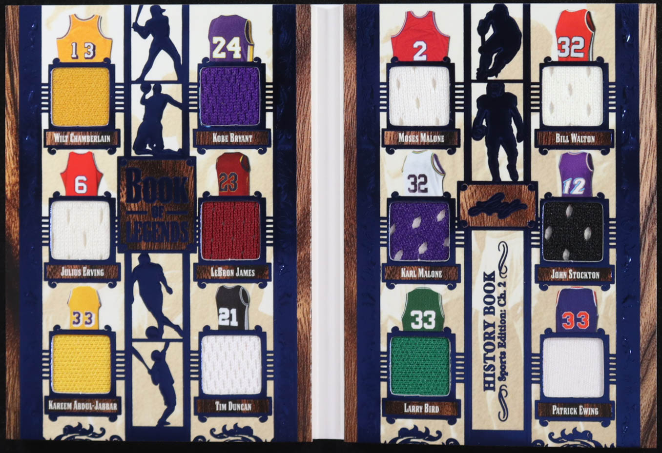 2025 Leaf History Book Book Of Legends Blue Sports Edition Ch. 2 #BL6 #5/5 Jumbo Card Wilt Chamberlain/Kobe Bryant/Julius Erving/LeBron James/Kareem Abdul-Jabbar/Tim Duncan/Moses Malone/Bill Walton/Karl Malone/John Stockton/Patrick Ewing