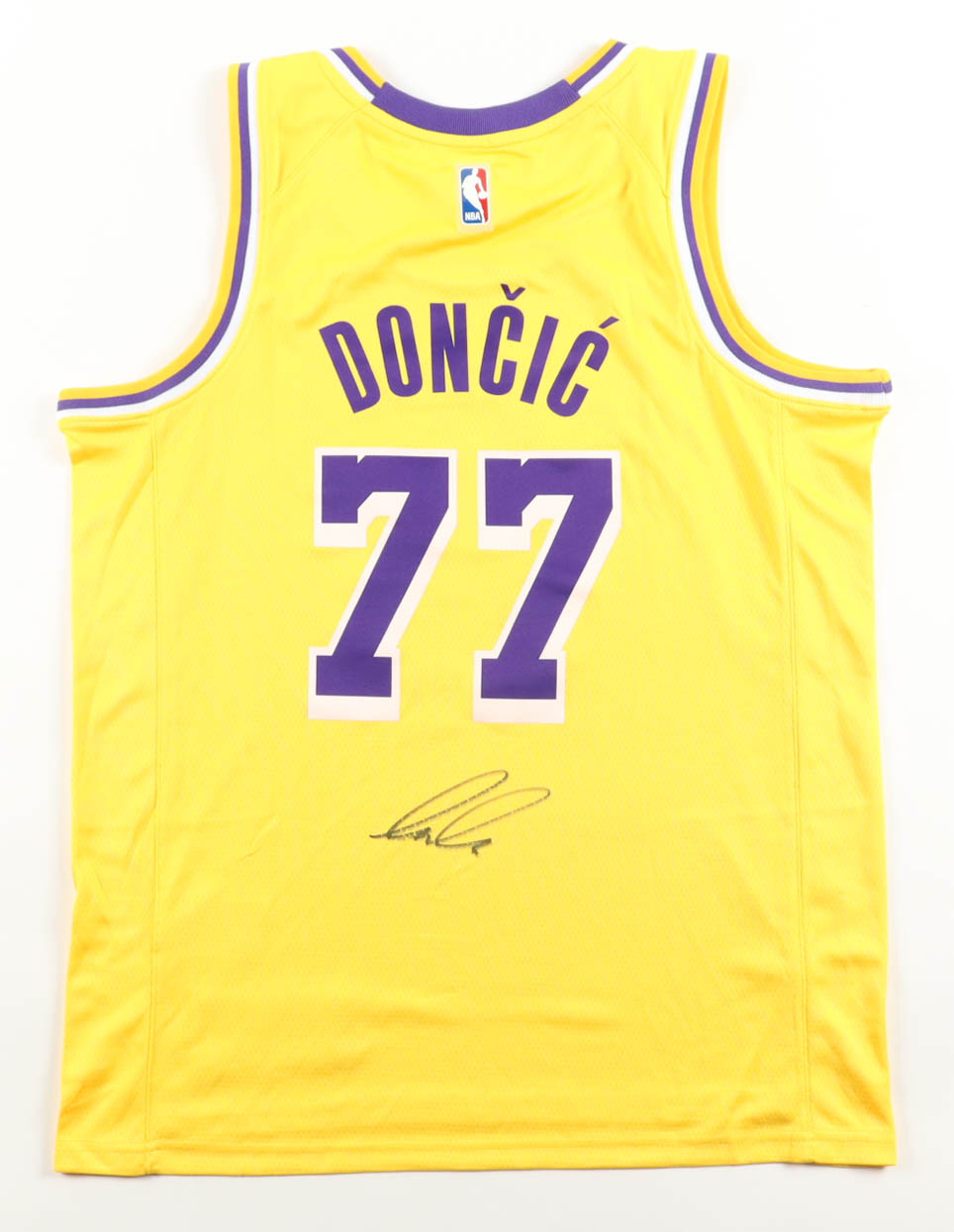 Nike authentic jersey with everything pressed on, size 48. Hand-signed by Luka Doncic (Los Angeles Lakers).