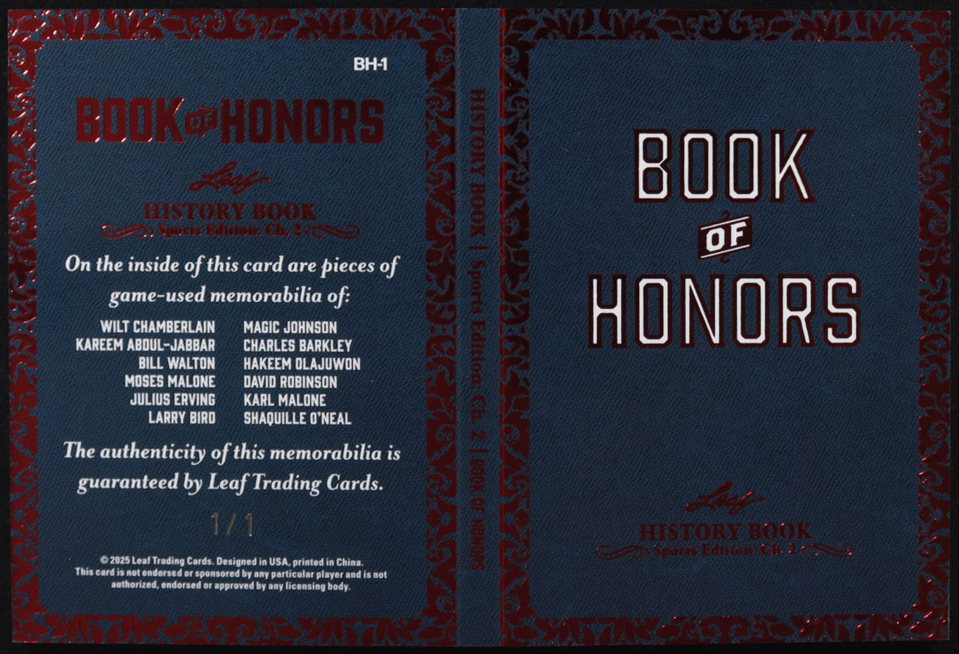 2025 Leaf History Book Of Honors Sports Edition Ch.2 #BH-1 #1/1 Jumbo Card Wilt Chamberlain/Moses Malone/Kareem Abdul-Jabbar/Julius Erving/Bill Walton/Larry Bird/Magic Johnson/David Robinson/Charles Barkley/Karl Malone/Hakeem Olajuwon/Shaquille O'Neal