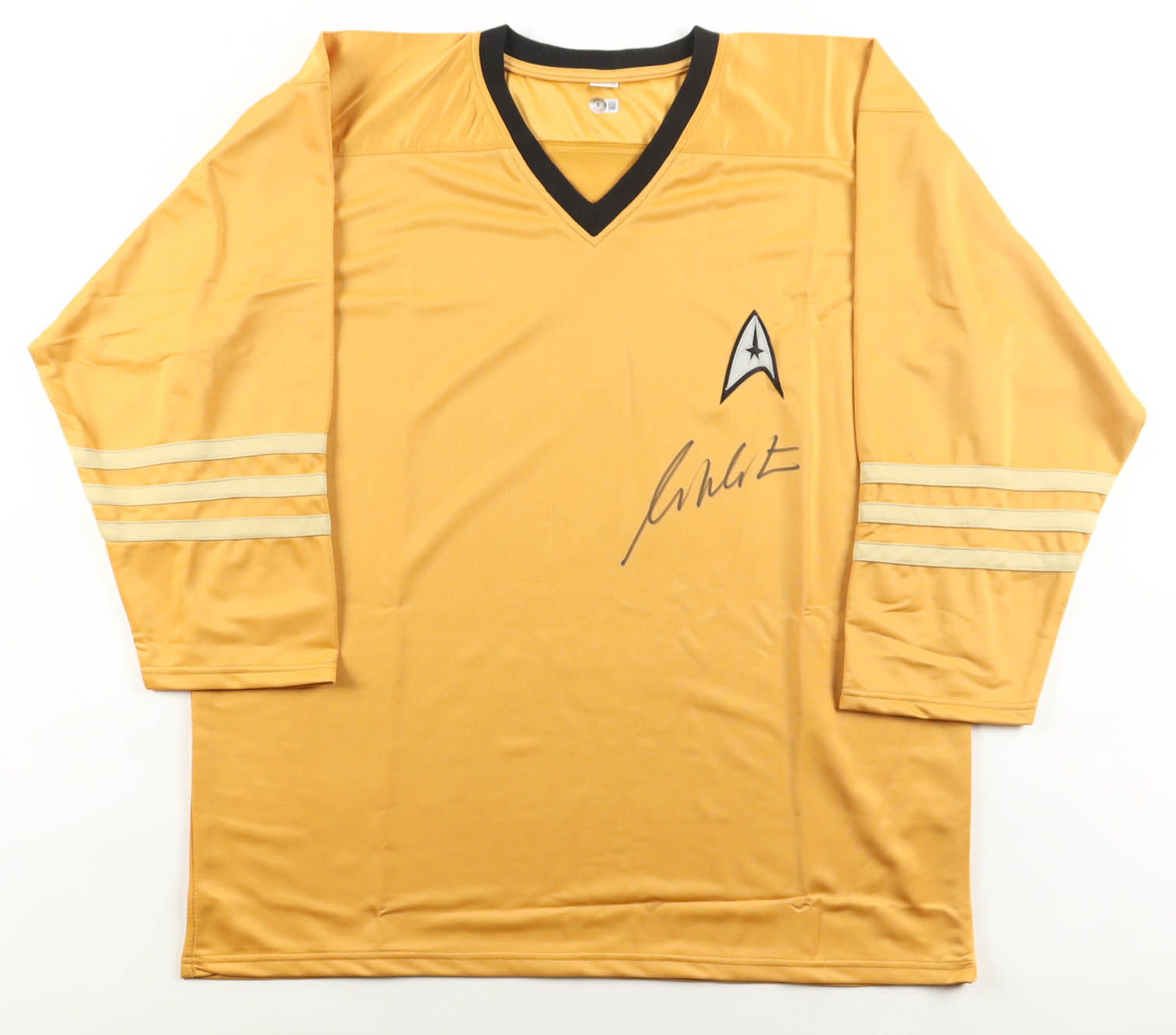 Custom Star Trek uniform. Everything sewn on, size XL. Jersey has been hand-signed by William Shatner (Captain James T. Kirk).