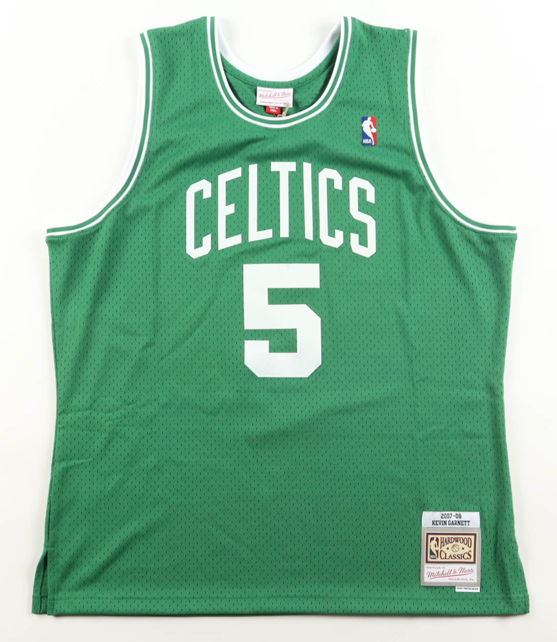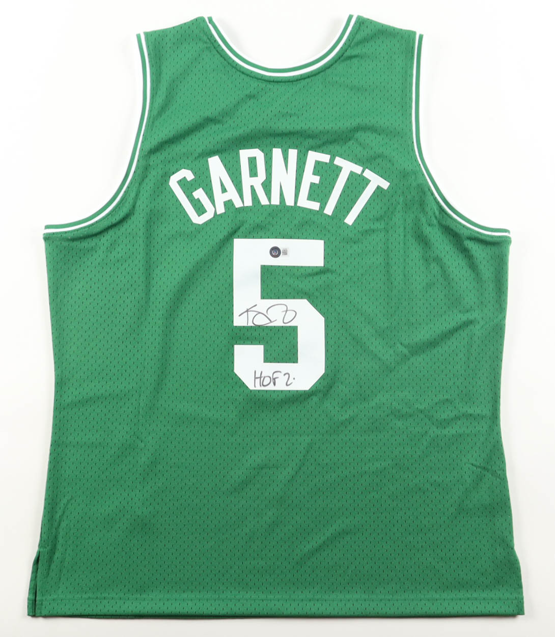 Mitchell & Ness jersey. Everything pressed on, size XL. Hand-signed and inscribed by Kevin Garnett (Boston Celtics , HOF).