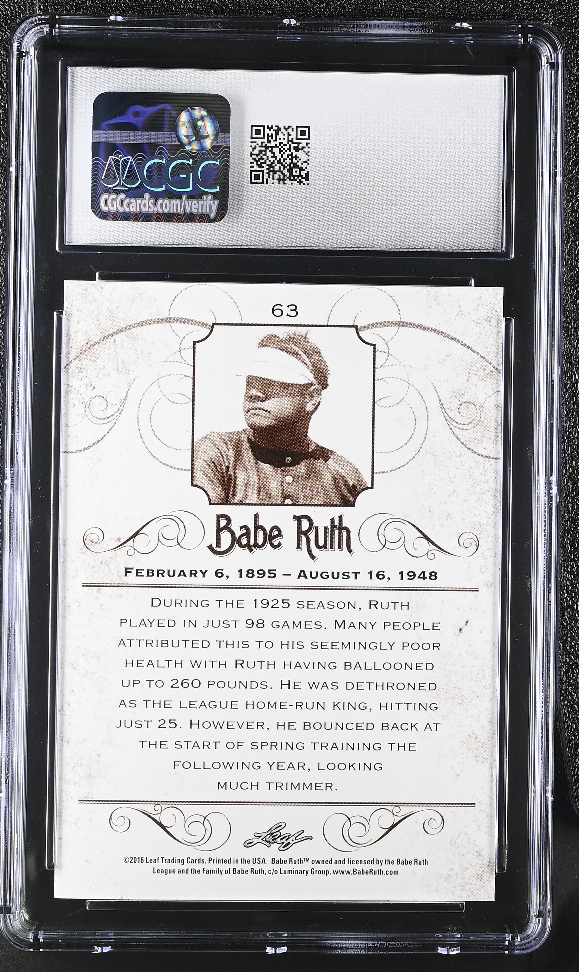 Babe Ruth 2016 Leaf Babe Ruth Collection #63 (CGC 8)