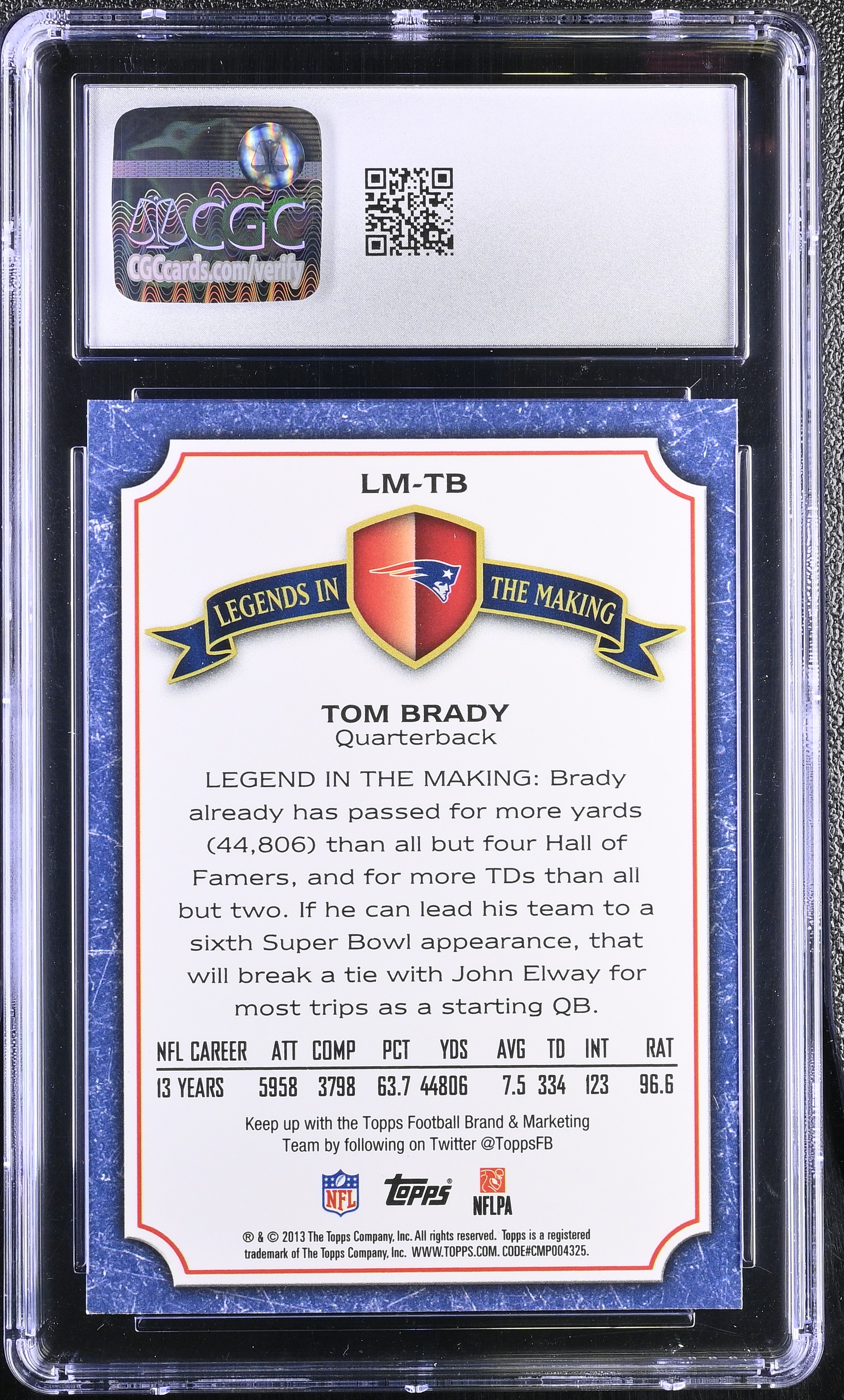 Tom Brady 2013 Topps Legends In The Making #LM-TB (CGC 8)