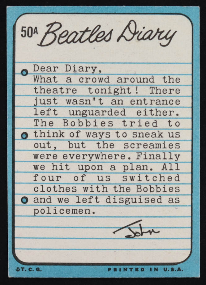 John, Paul, George, Ringo 1964 Topps The Beatles Diary #50A