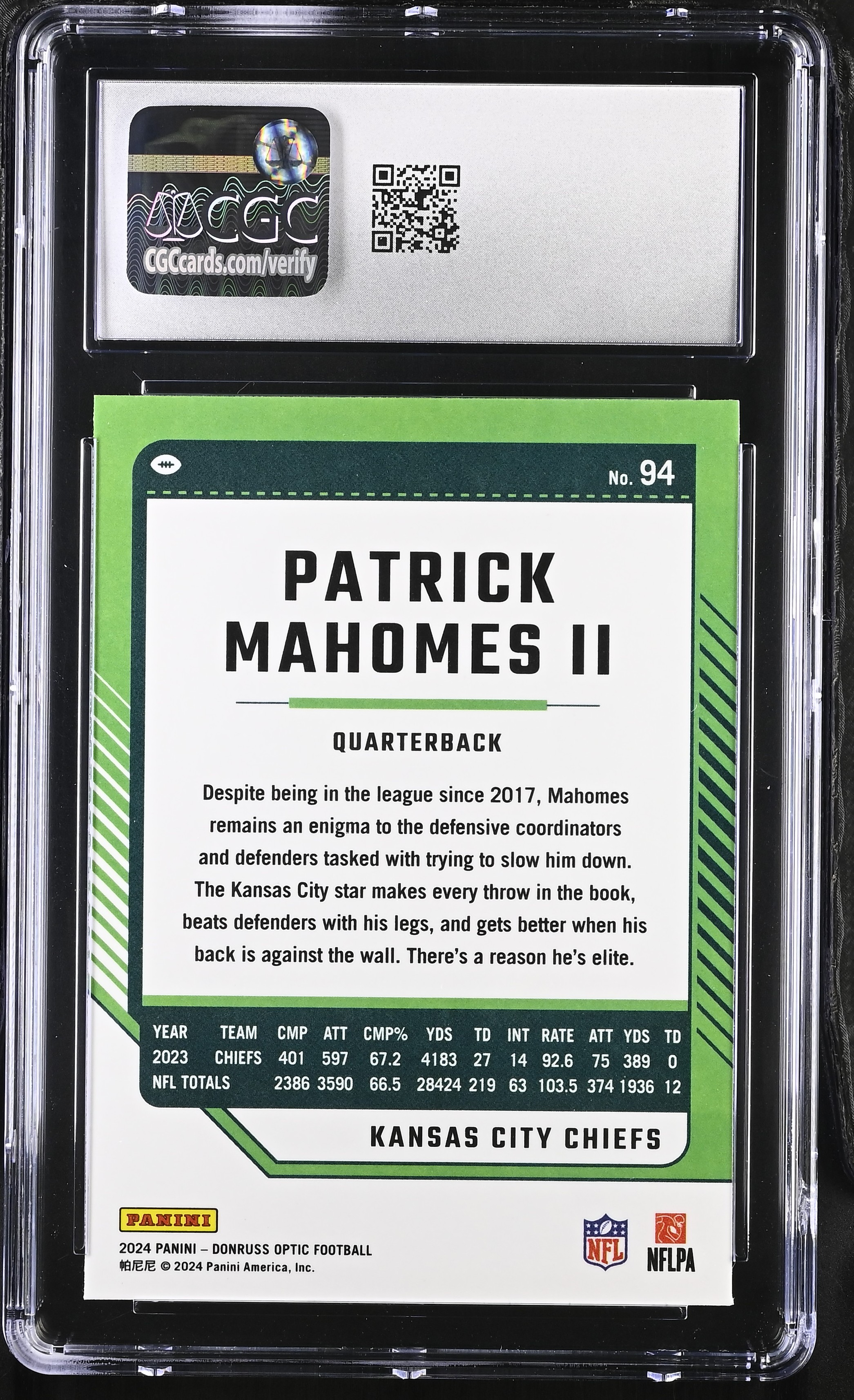 Patrick Mahomes II 2024 Donruss Optic #94 (CGC 9.5)