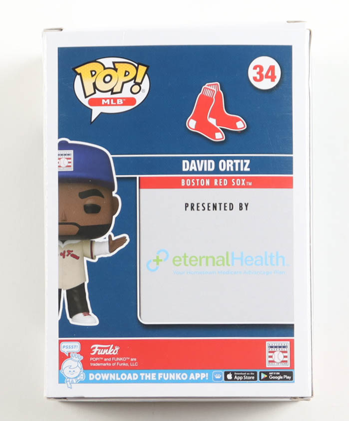 Vinyl figure measures approximately 4" tall and has been hand-signed by David Ortiz (Boston Red Sox, HOF). Please note, item has been window swapped, there are minor tears on the corners, and minor creases throughout the packaging.