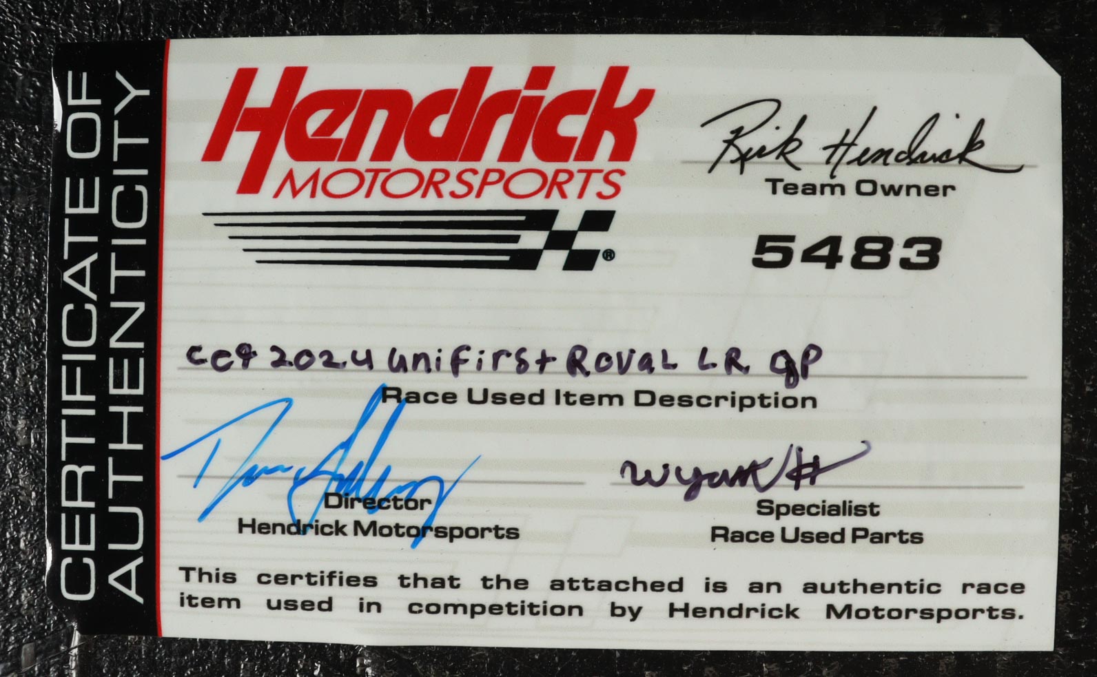 Race-Used Right Rear Quarter Panel Car Piece from Chase Elliott's #9 Unifirst used during the 2024 Charlotte Motor Speedway. Authenticated by the Director and Race Used Parts Specialist at Hendrick Motorsports.