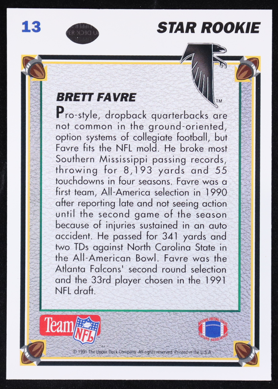 Brett Favre 1991 Upper Deck #13 RC