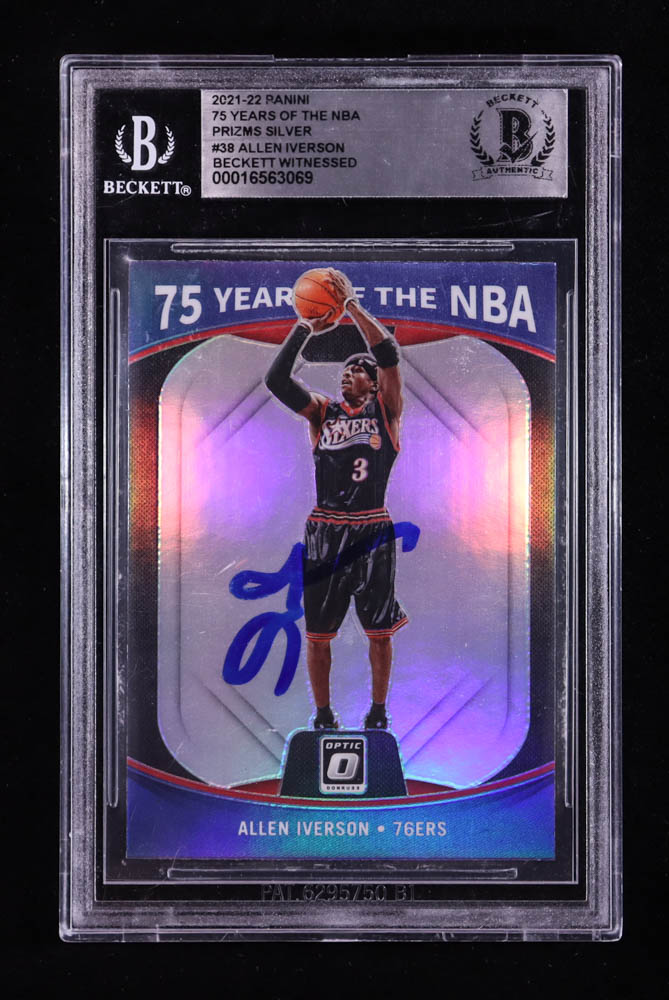 Allen Iverson Signed 2021-22 Panini 75 Years of the NBA Prizms Silver #38 / Optic (BGS)