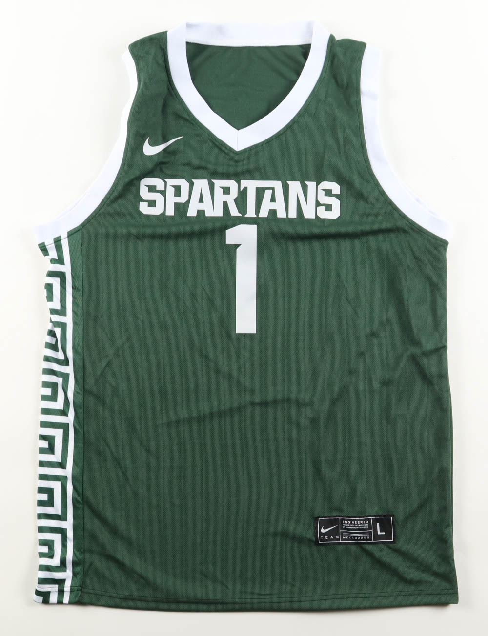 Nike jersey with everything pressed on, size L. Hand-signed by Jeremy Fears Jr. (Michigan Spartans).