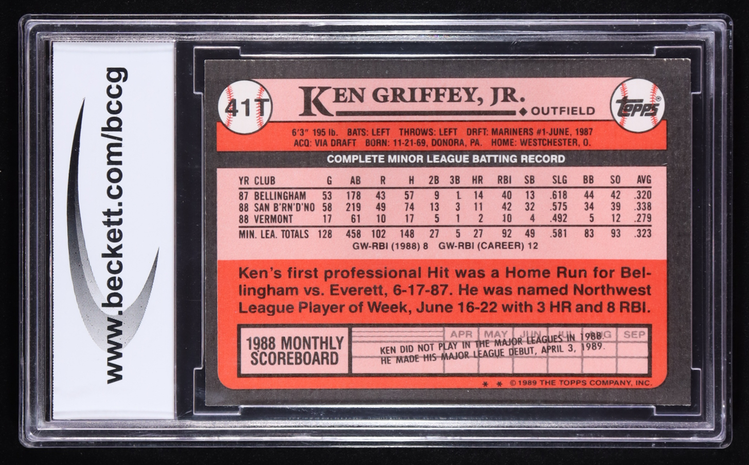 Ken Griffey Jr. 1989 Topps Traded #41T RC (BCCG 10)