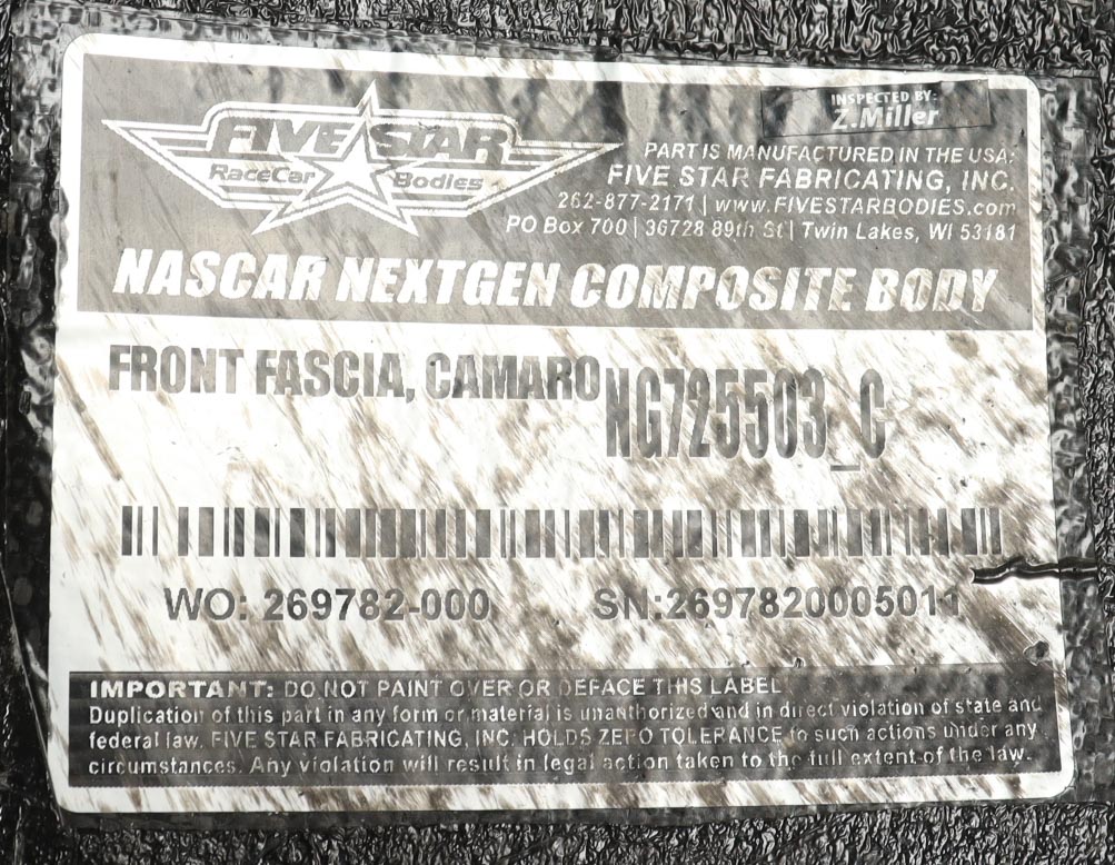 Race-Used Partial Left Nose Car Piece from Kyle Larson's Gen 7 #5 HendrickCars.com. Authenticated by the Director and Race Used Parts Specialist at Hendrick Motorsports.