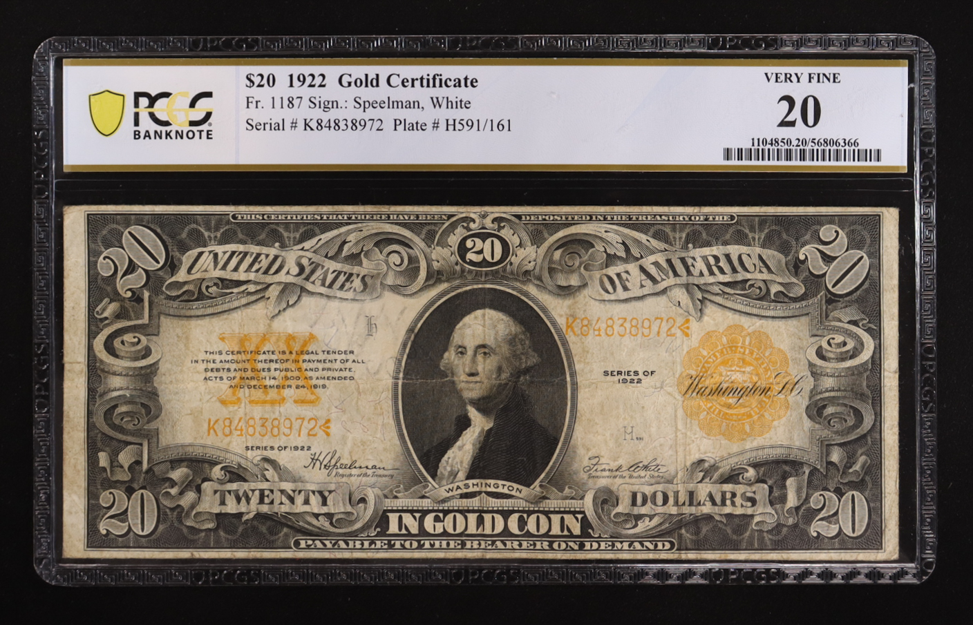 1922 United States Gold Certificate $20 Twenty Dollar National Bank Note - Orange Seal (PCGS VF 20)
