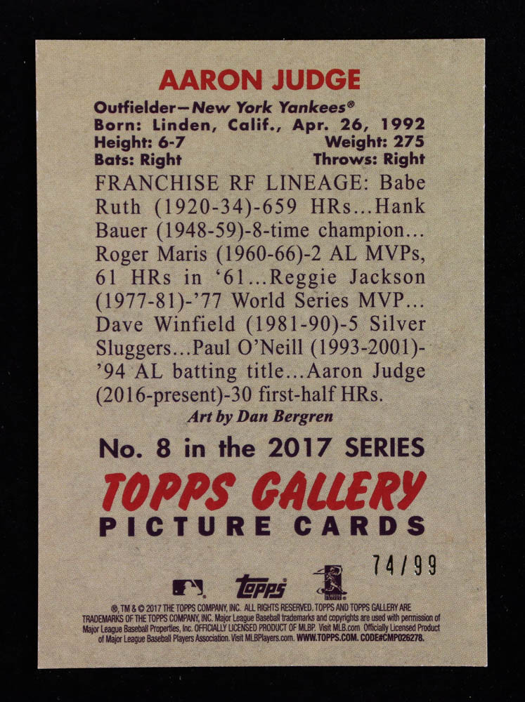 Aaron Judge 2017 Topps Gallery Heritage Blue #H8 RC #74/99