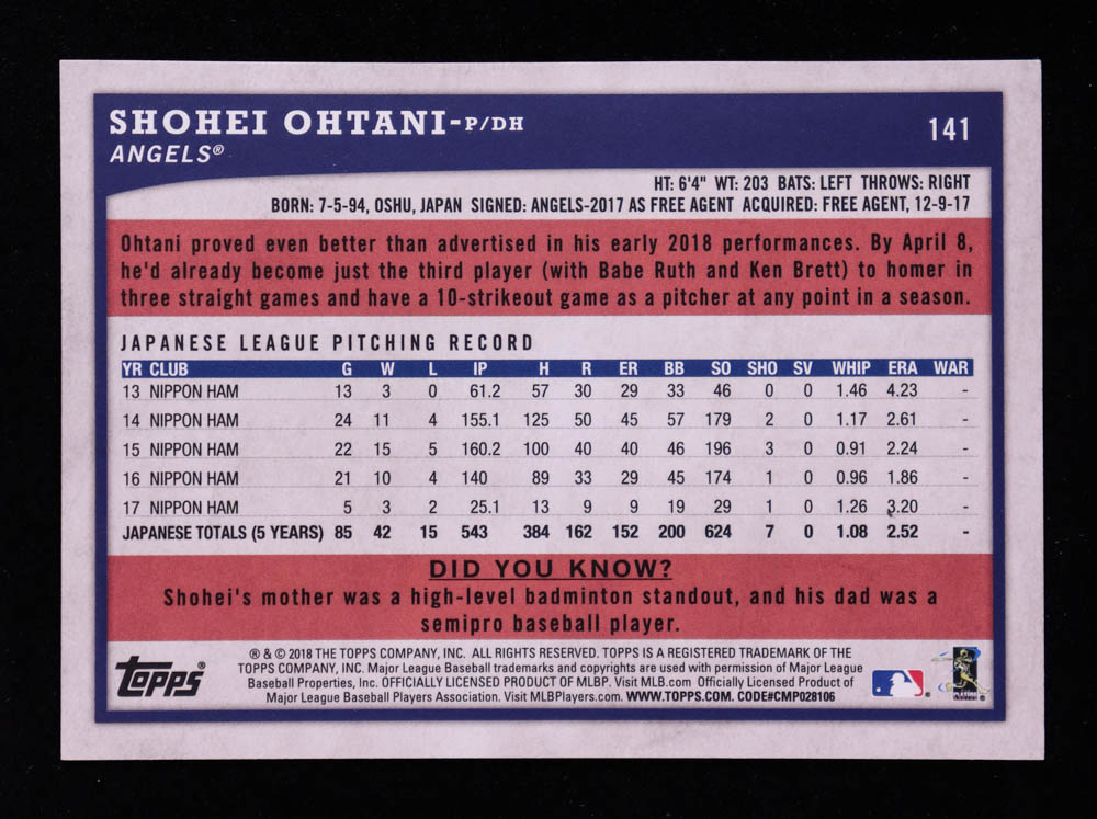 Shohei Ohtani 2018 Topps Big League #141 RC
