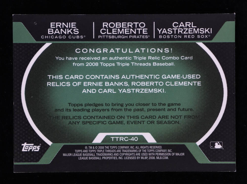 Ernie Banks / Roberto Clemente / Carl Yastrzemski 2008 Topps Triple Threads Relics Combos Emerald #40 #6/18