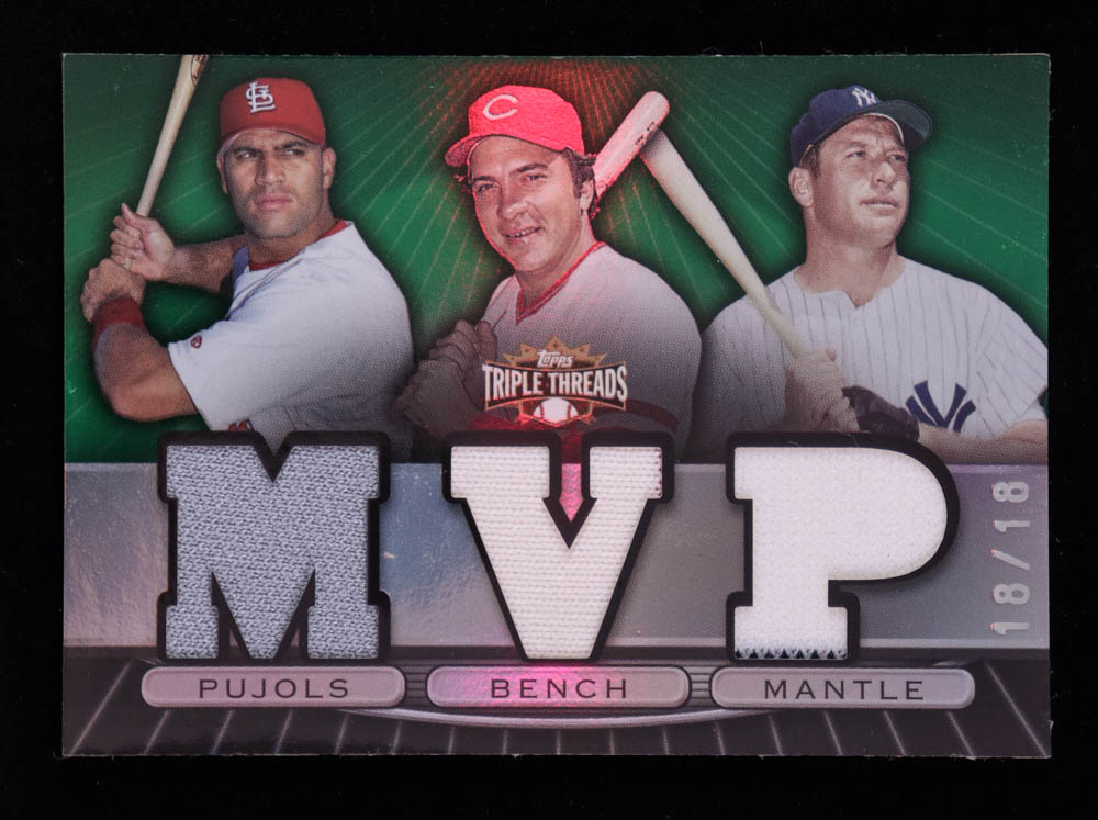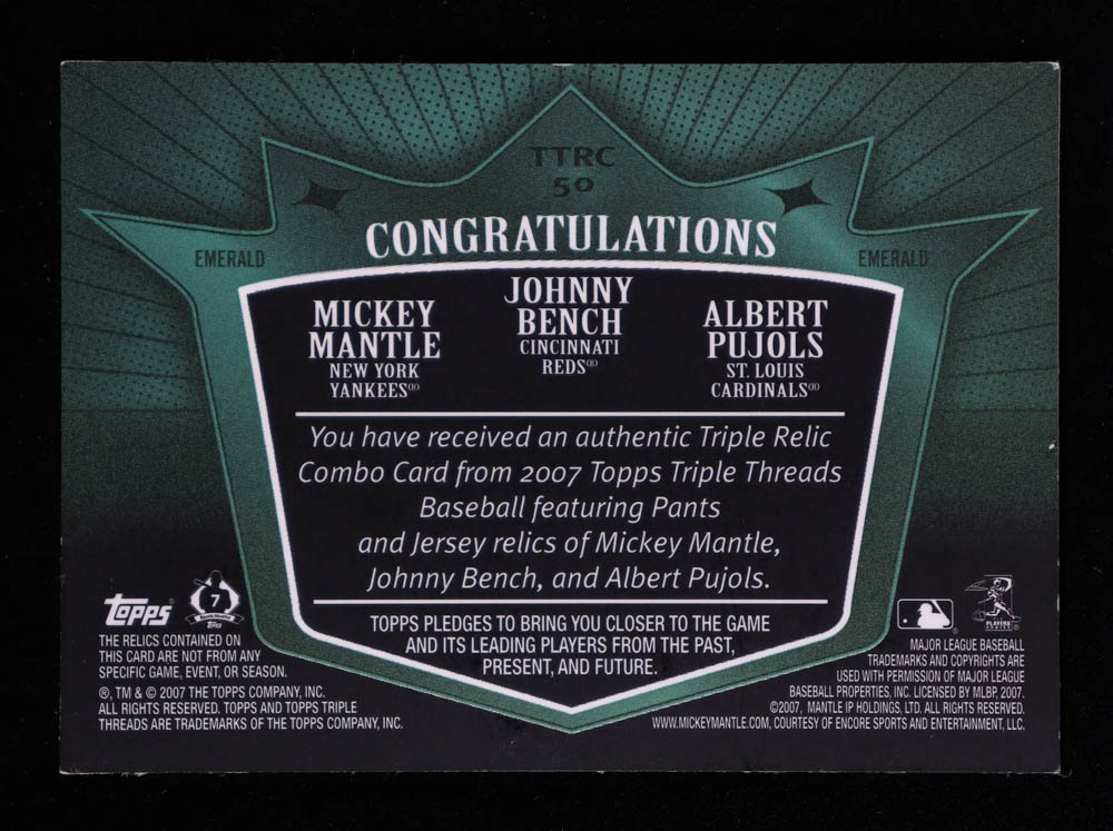 Mickey Mantle / Johnny Bench / Albert Pujols 2007 Topps Triple Threads Relics Combos Emerald #50 #18/18