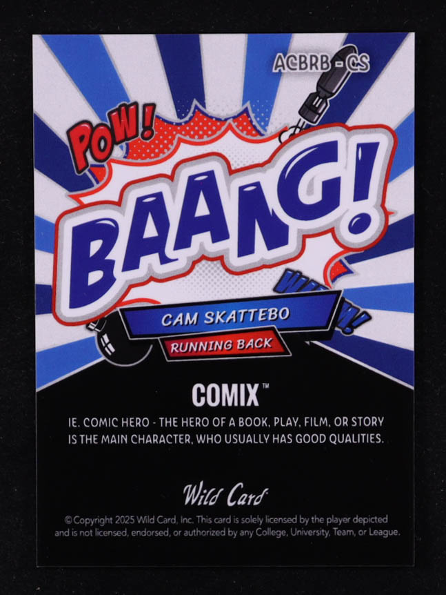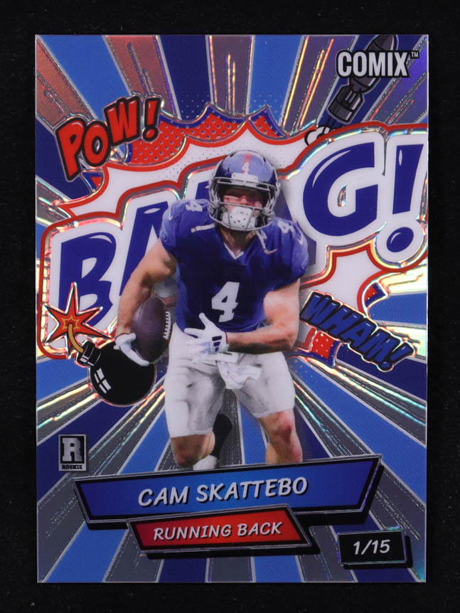 Cam Skattebo 2025 Wild Card Comix BAANG! Prismatic Blue and Silver RC #01/15