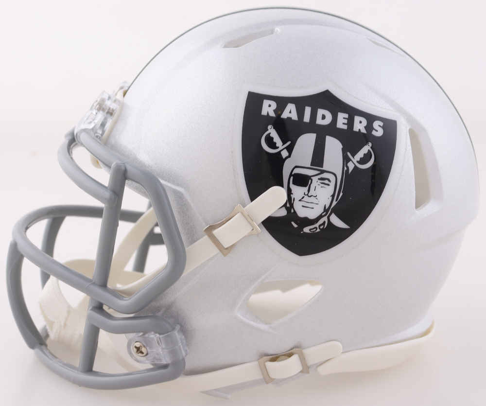 Riddell Las Vegas Raiders Speed mini helmet. Hand-signed by Bill Romanowski.