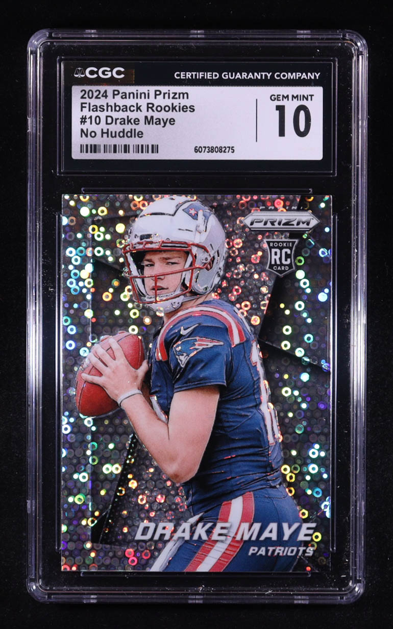 Drake Maye 2024 Panini Prizm Prizm Flashback Rookie Prizms No Huddle #10 RC (CGC 10)