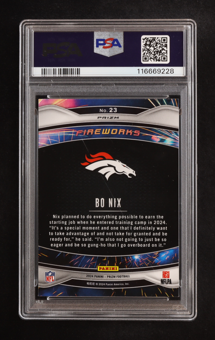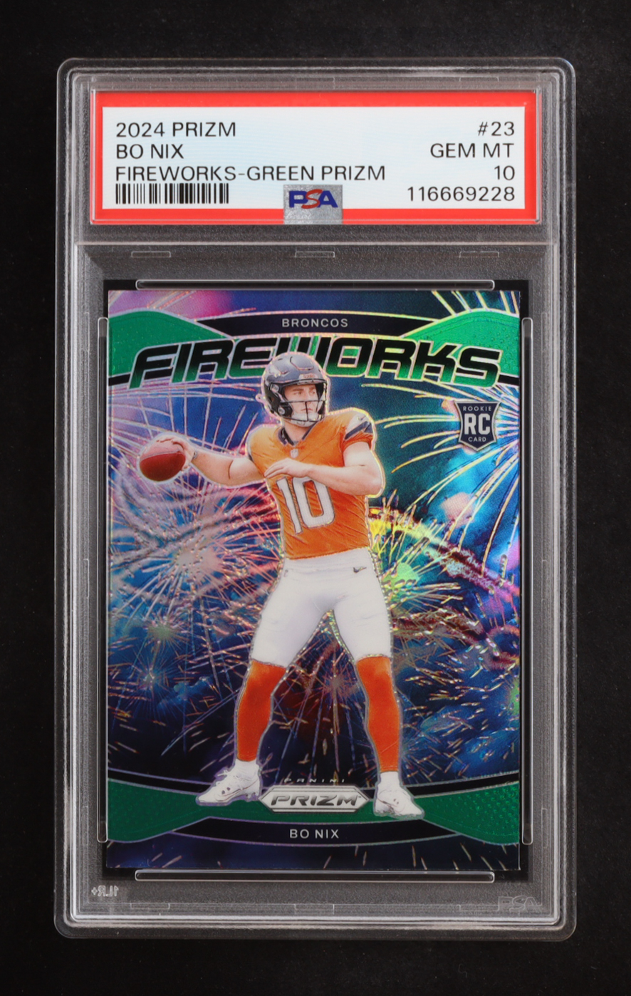 Bo Nix 2024 Panini Prizm Fireworks Prizms Green #23 RC (PSA 10)