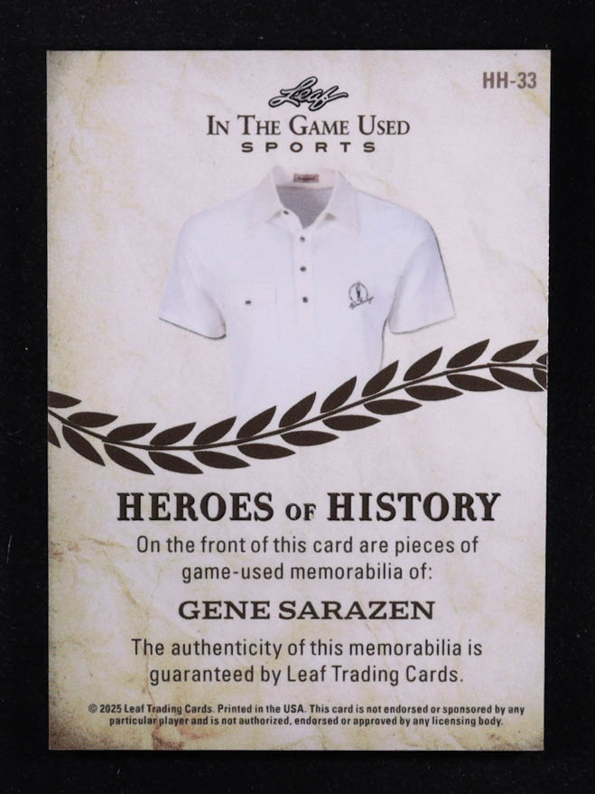 Gene Sarazen 2025 Leaf ITG Used Sports Heroes Of History Triple Relic Rainbow Foil #HH33 #3/5
