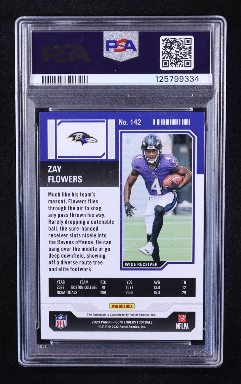 Zay Flowers 2023 Panini Contenders Autograph #142 RC (PSA 9)