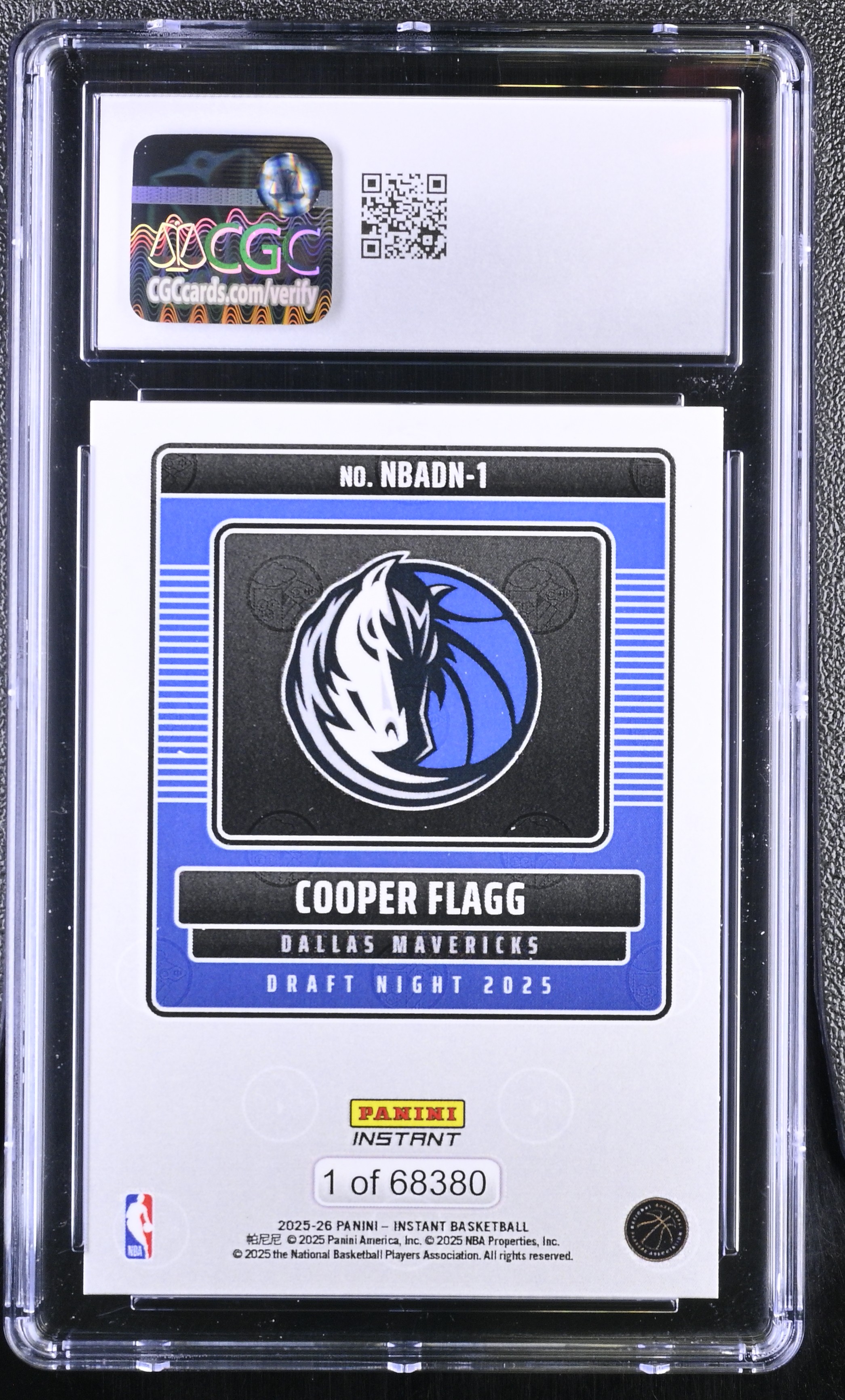 Cooper Flagg 2025-26 Panini Instant Draft Night #NBADN-1 RC (CGC 10)