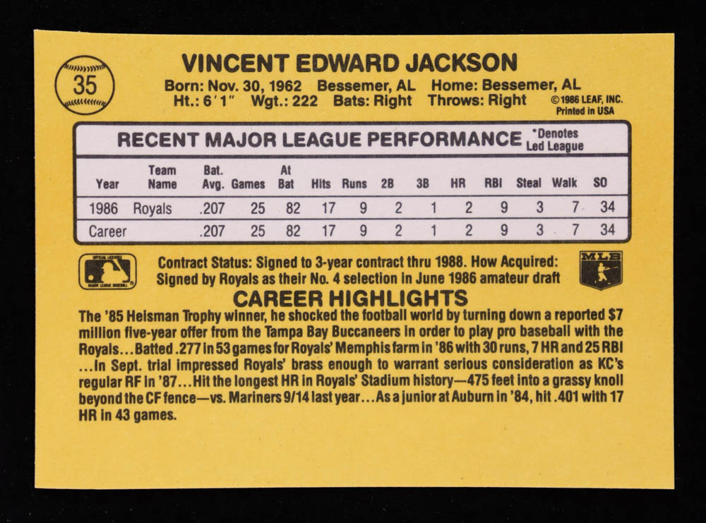 Bo Jackson 1987 Leaf/Donruss #35 RR RC