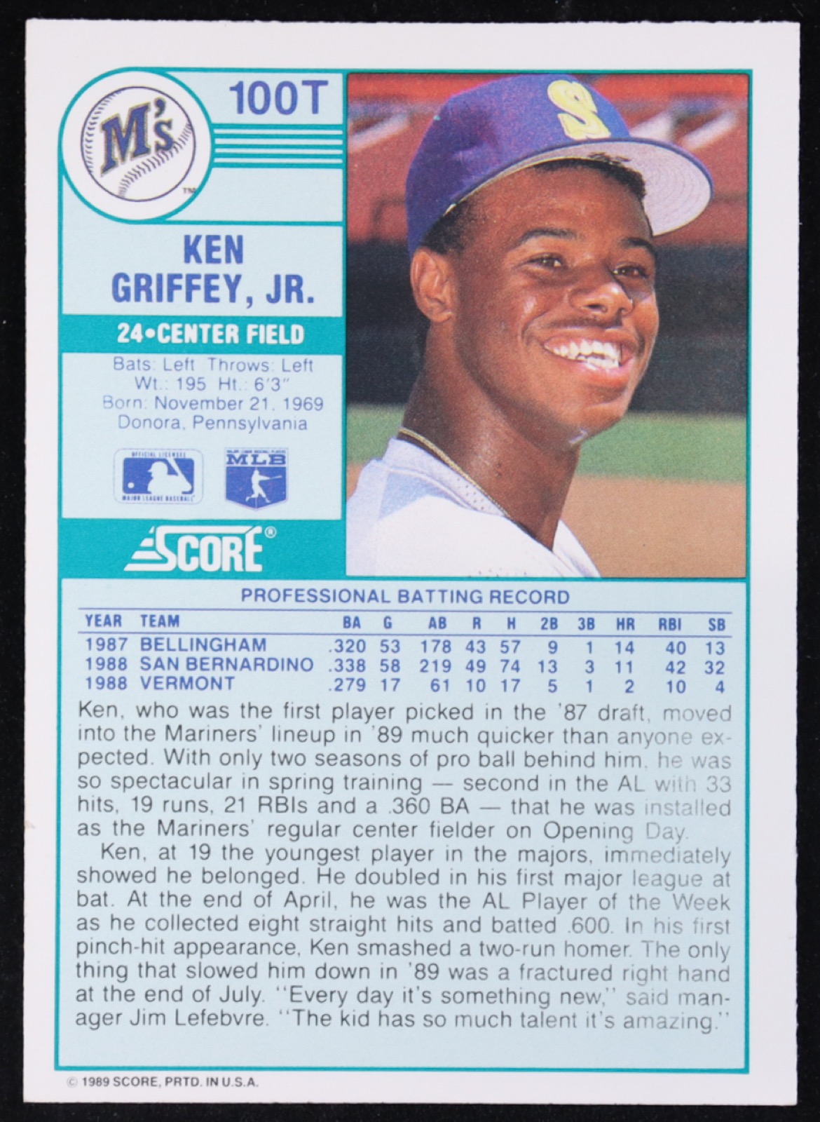 Ken Griffey Jr. 1989 Score/Traded #100T RC