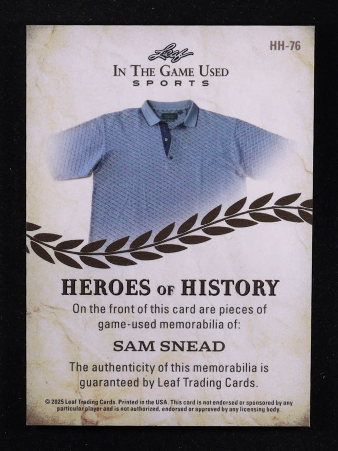 Sam Snead 2025 Leaf ITG Used Sports Heroes Of History Triple Relic Rainbow Foil #HH76 #5/5