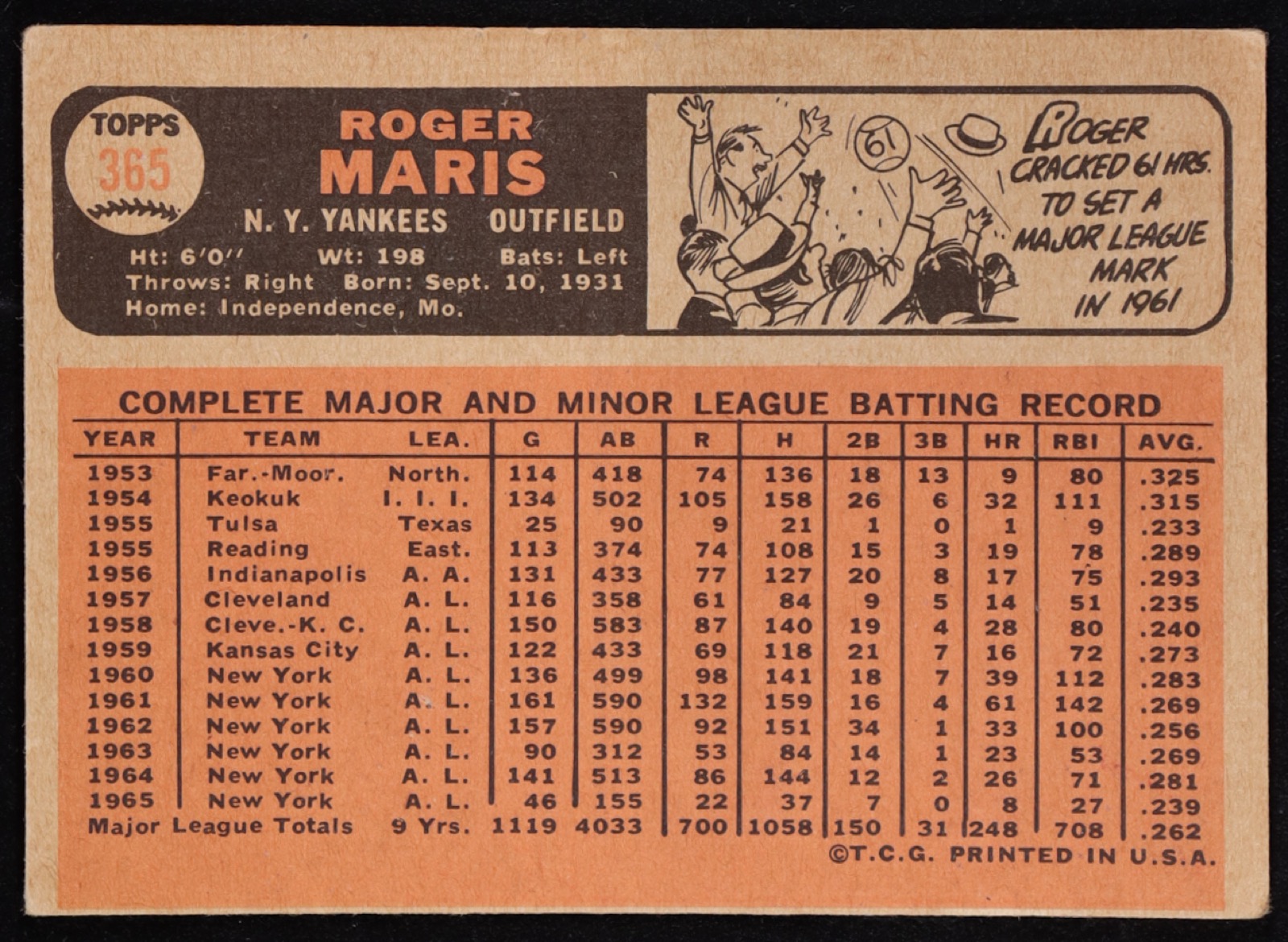 Roger Maris 1966 Topps #365